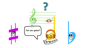 In Smiley Note lessons and videos, sharps and flats are introduced as music symbols.